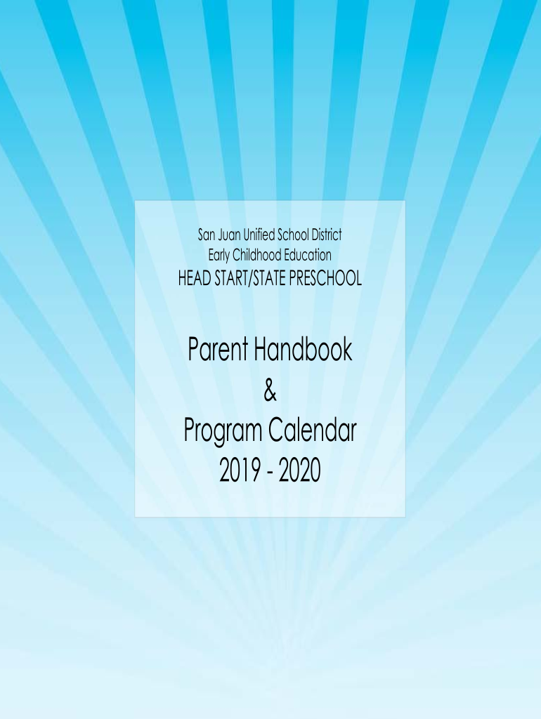 San Juan Unified School District Early Childhood Educational START/STATE PRESCHOOLParent Handbook & Program Calendar 2019 2020TABLE OF CONTENTS LETTER OF INTRODUCTION .......................................................................................................