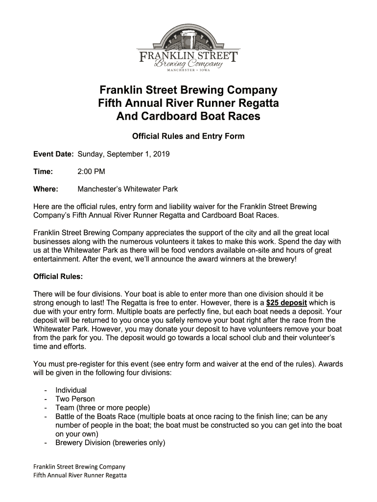 Get the free 2019 River Runner Regatta Rules and Entry Form
