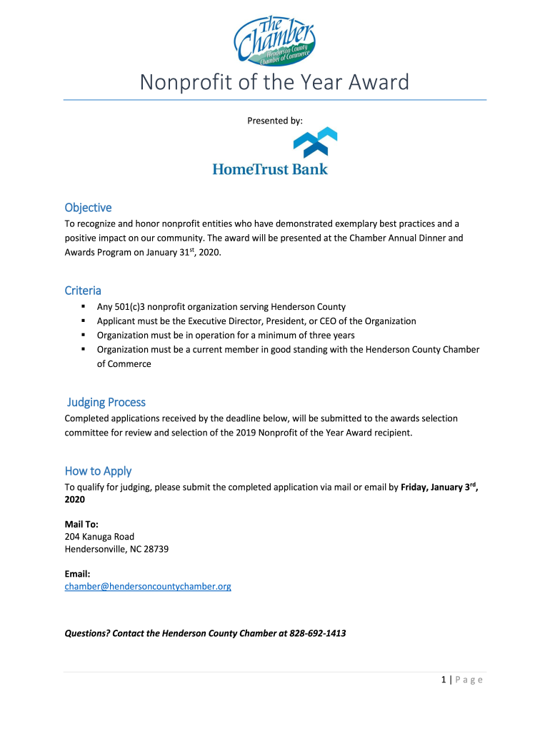 Get the free Nonprofit of the Year Award - Henderson County Chamber