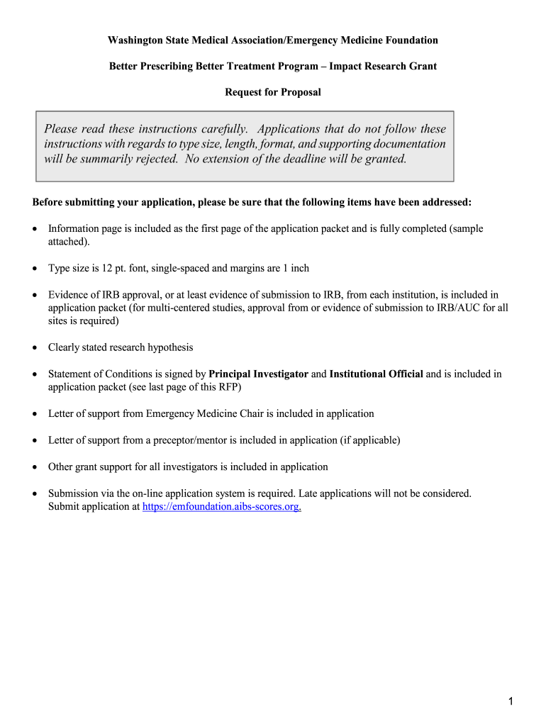 Washington State Medical Association/Emergency Medicine Foundation Better Prescribing Better Treatment Program Impact Research Grant Request for ProposalPlease read these instructions carefully. Applications