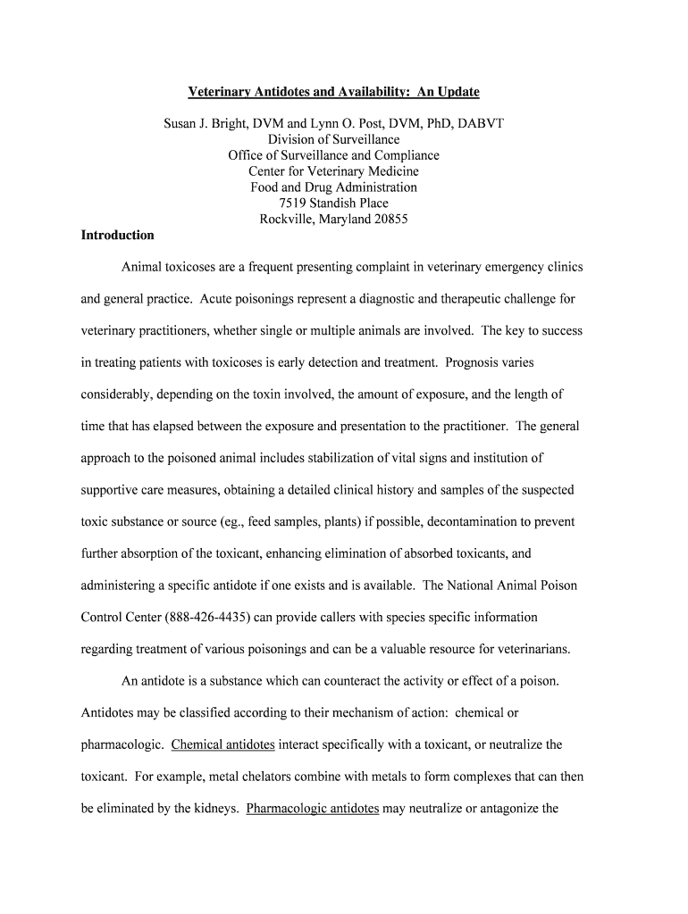 Get the free Veterinary Antidotes and Availability: An Update Susan J. Bright ... - abvt