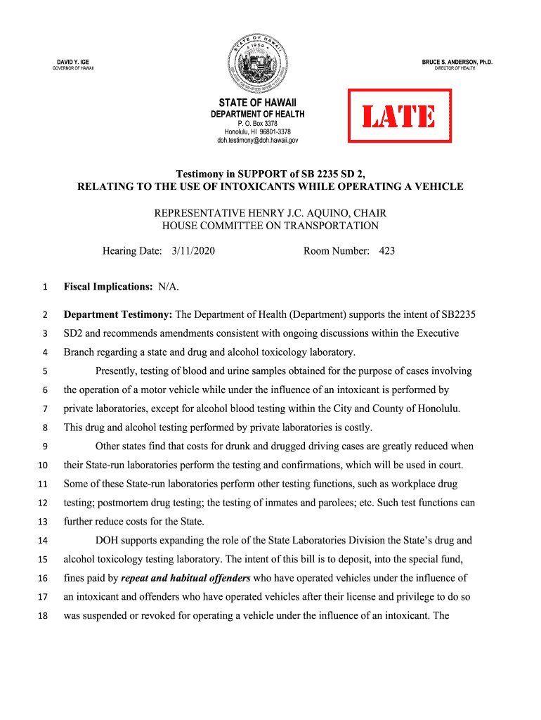 , ..., 1 O r., 'DAVID Y. IGE., :,J1vj:;V, ;/, 1 '7H, IllnBRUCE S. ANDERSON, Ph.D.4 '; 'GOVERNOR OF HAWAIIDIRECTOR OF HEALTH3...... '1 “, ea,,,. , .mm /, '....... “v ...., ..., MMM STATE OF HAWAIIDEPARTMENT