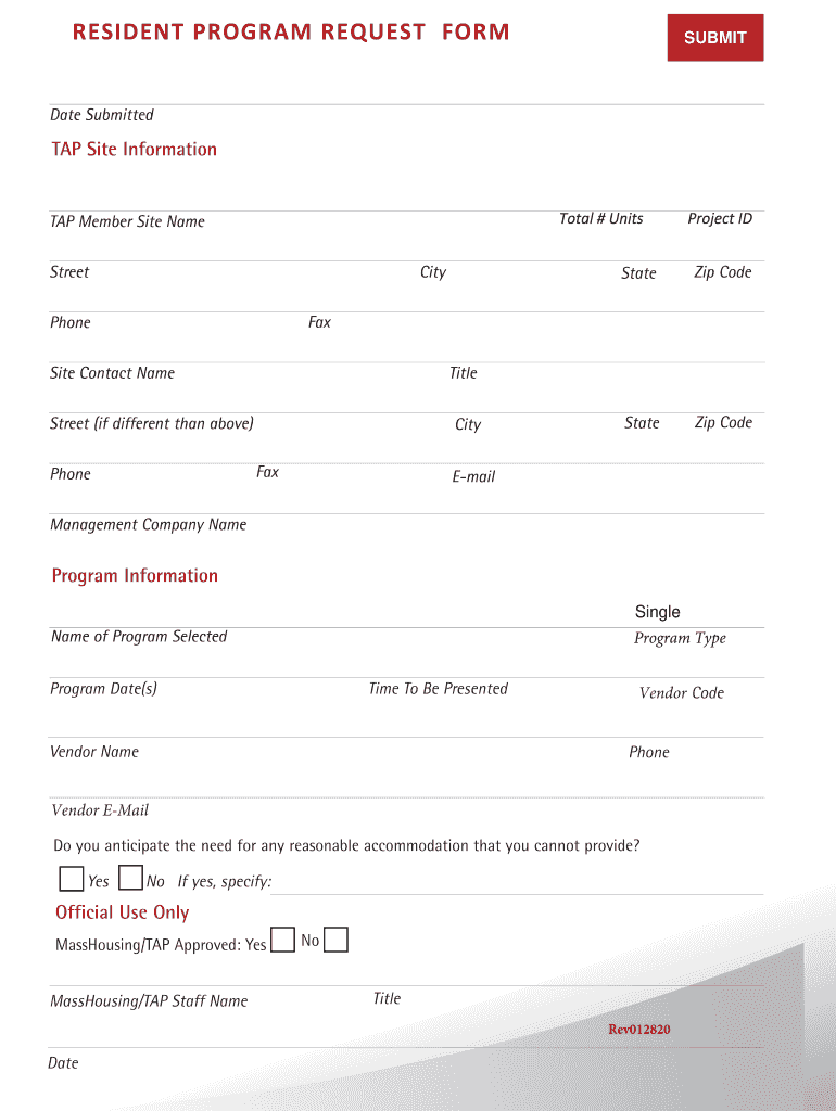 RESIDENT PROGRAM REQUEST FORMSUBMITDate Submitted TAP Site Information