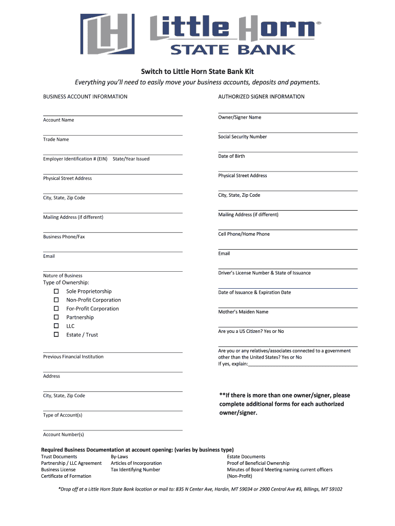Switch To Little Horn is not the form you're looking for?Search for another form here.