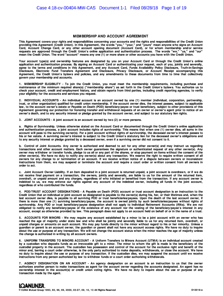 Case 4:18cv00404MWCAS Document 1 Filed 08/28/18-Page 1 of 13UNITED STATES DISTRICT COURT FOR THE NORTHERN DISTRICT OF FLORIDA REGINA DANIELS, Individually and on behalf of all Others Similarly Situated,