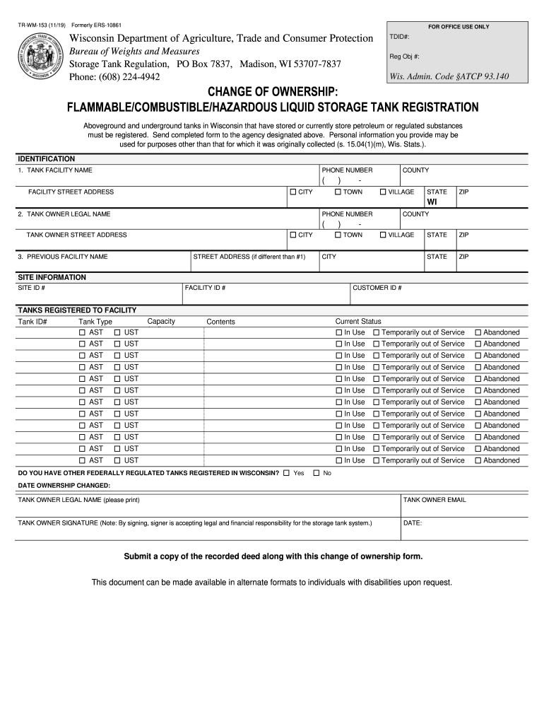 TRWM153 (11/19)Formerly ERS10861FOR OFFICE USE ONLY Wisconsin Department of Agriculture, Trade and Consumer Protection