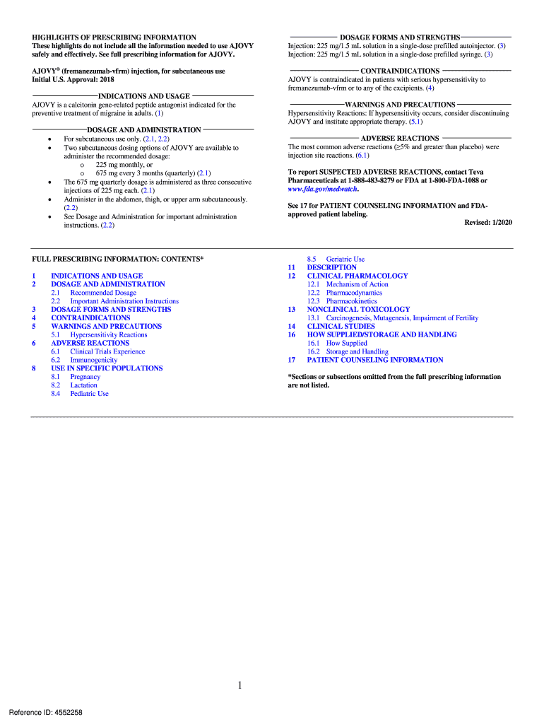 Get the free Online label. Ajovy (fremanezumab-vfrm) injection Fax ...