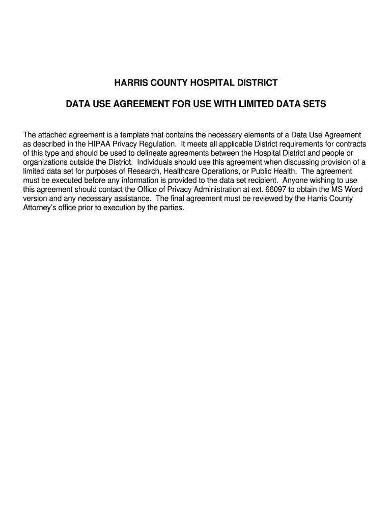 The attached agreement is a template that contains the necessary elements of a Data Use Agreement