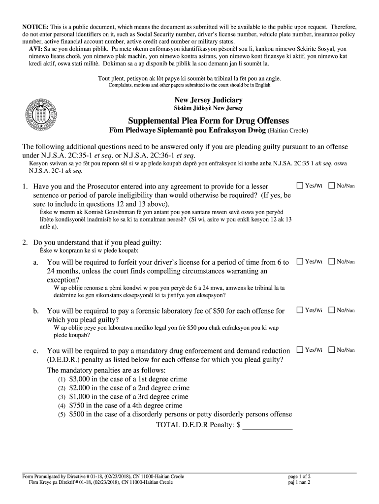 Get the free Supplemental Plea Form for Drug Offenses/Fm Pledwaye Siplemant pou Enfraksyon Dwg