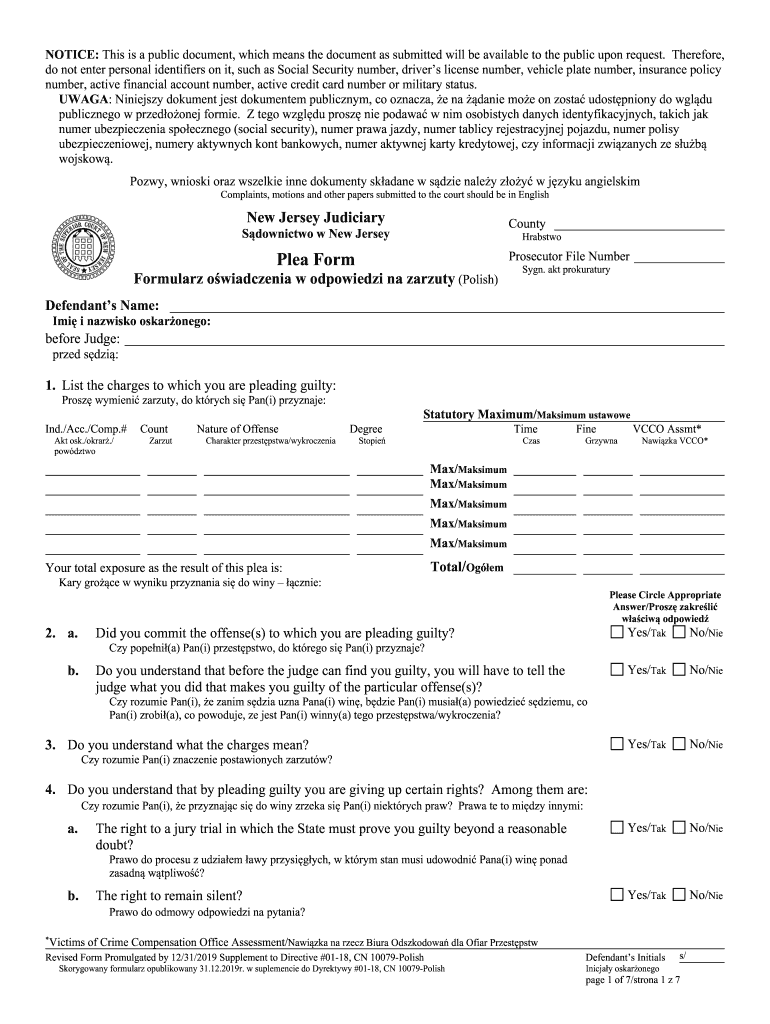 Get the free Plea Form/Formularz owiadczenia w odpowiedzi na zarzuty. Plea Form/Formularz owiadcz...