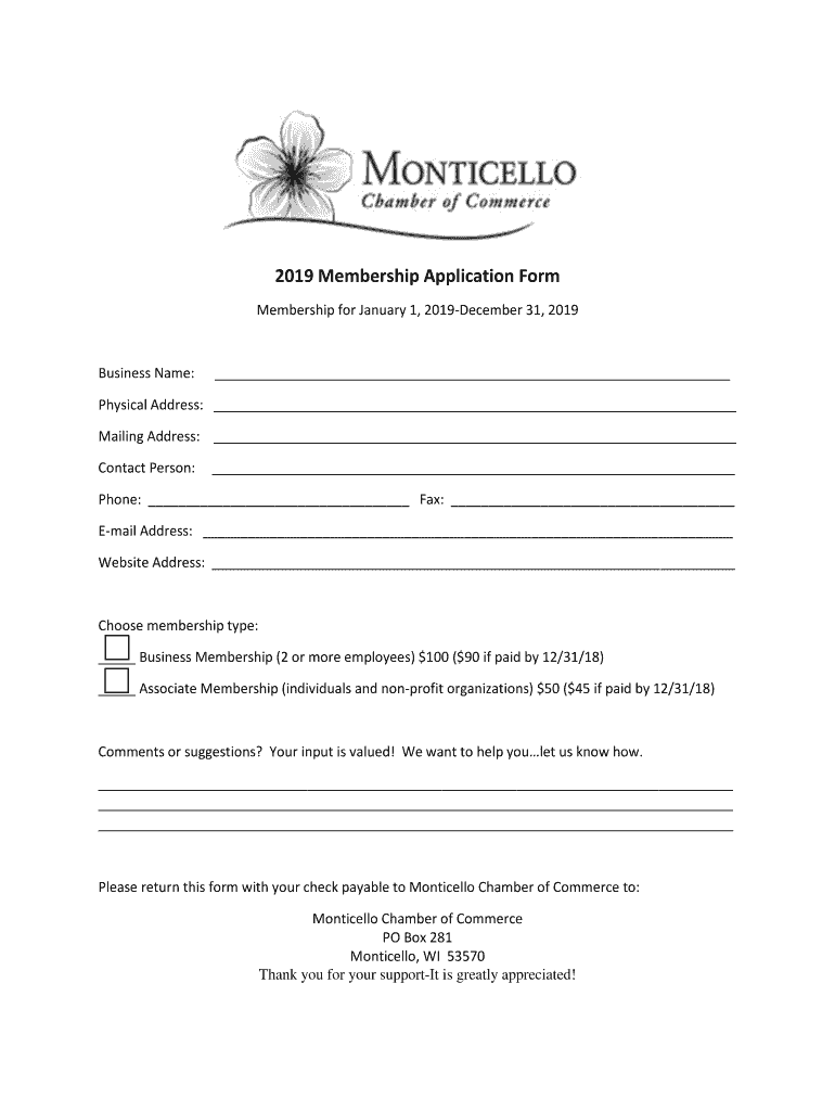 2019 Membership Application Form Membership for January 1, 2019December 31, 2019Business Name: Physical Address: Mailing Address: Contact Person: Phone: Fax: Email Address: Website Address: Choose