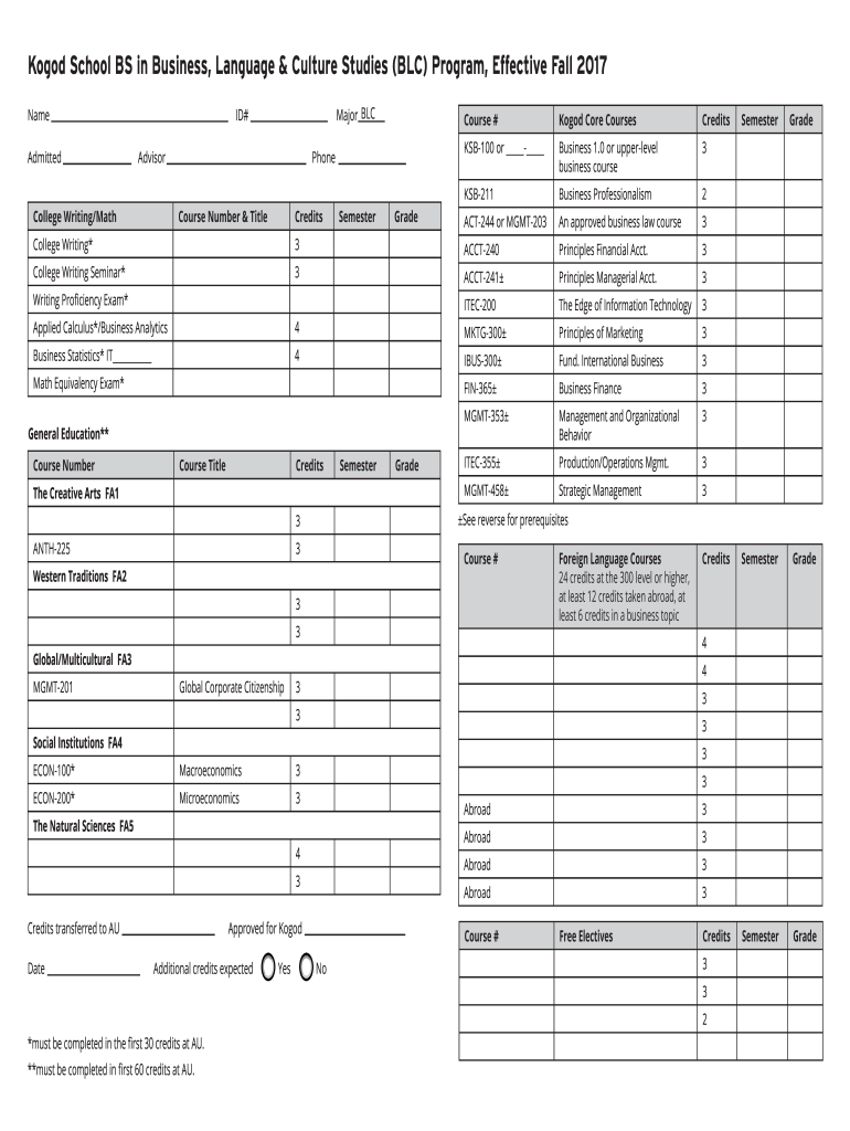 Get the free Kogod School BS in Business, Language & Culture Studies (BLC) Program, Effec...