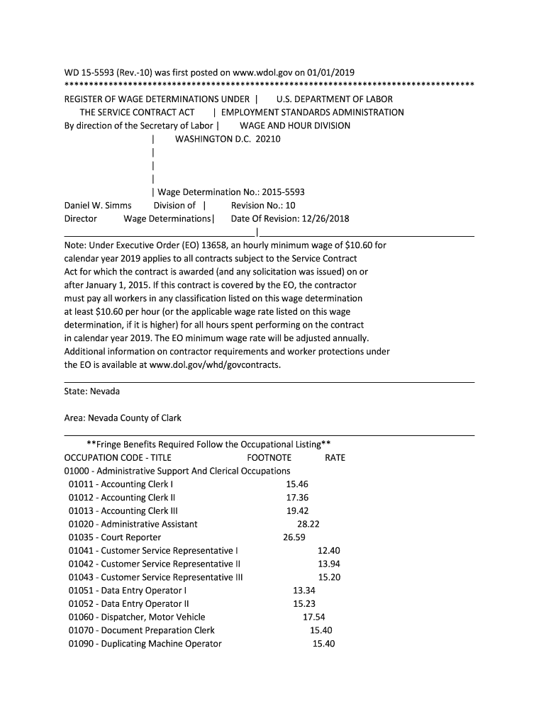 WD 155593 (Rev.10) was first posted on www.wdol.gov on 01/01/2019 ************************************************************************************ REGISTER OF WAGE DETERMINATIONS UNDER U.S. DEPARTMENT
