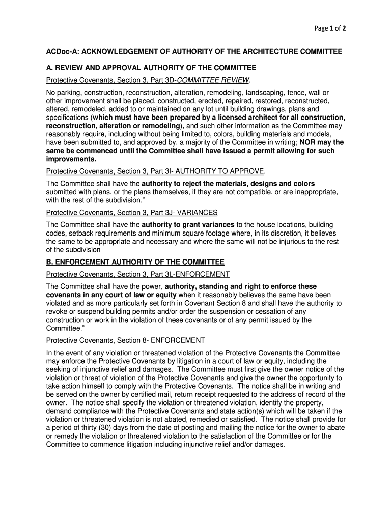 Get the free ACDoc-A: ACKNOWLEDGEMENT OF AUTHORITY OF THE ARCHITECTURE COMMITTEE
