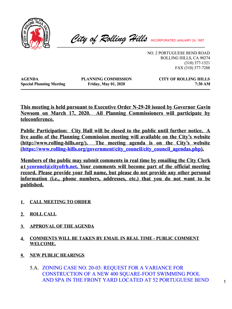 Friday, May 01, 2020CITY OF ROLLING HILLS