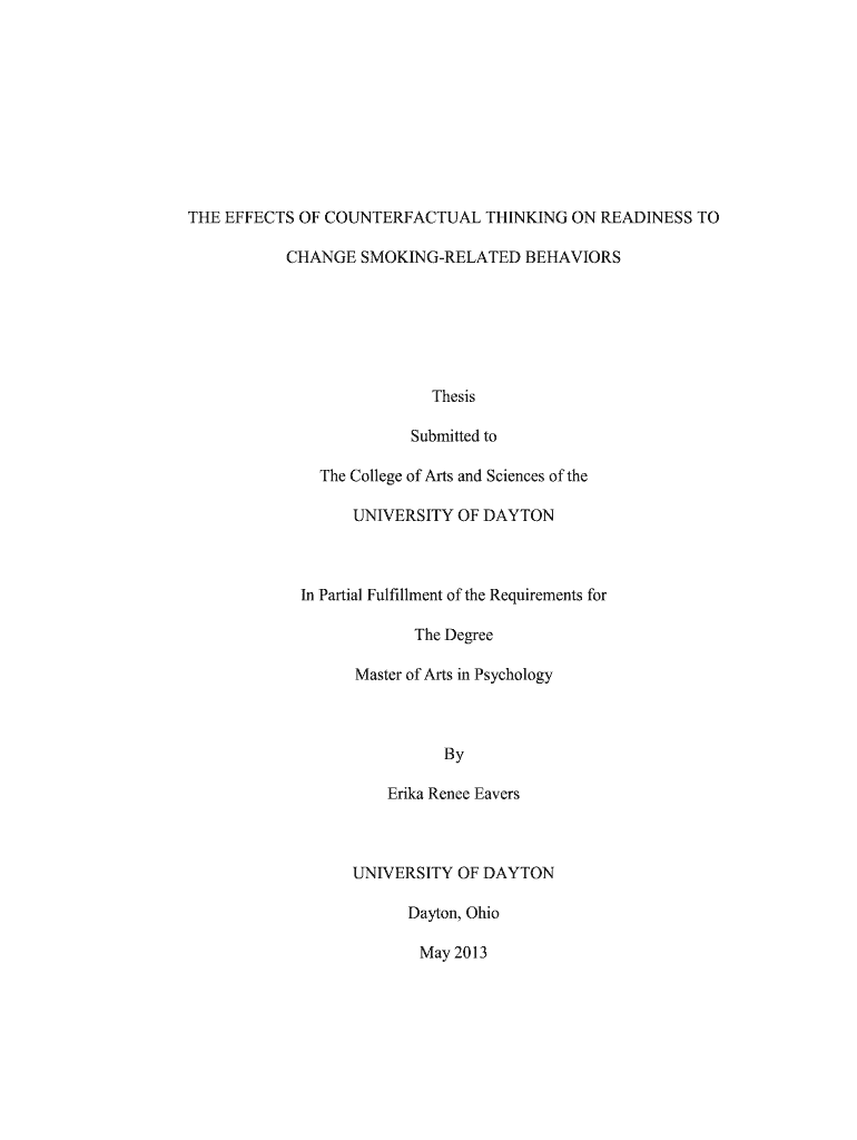 THE EFFECTS OF COUNTERFACTUAL THINKING ON READINESS TO CHANGE SMOKINGRELATED BEHAVIORSThesis Submitted to The College of Arts and Sciences of the UNIVERSITY OF Dayton Partial Fulfillment of the Requirements