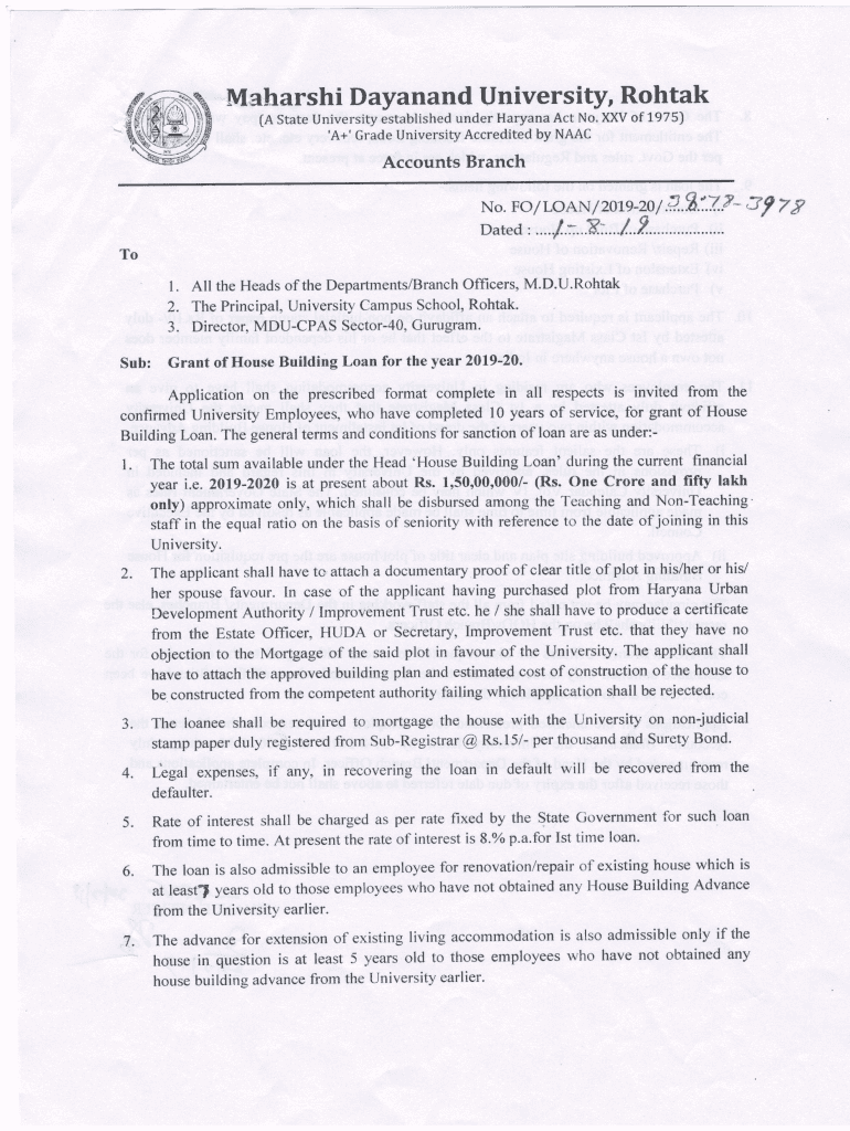 , FFI;;r,.university, Rota “k Maharishi Dayan and of 7s7s) Haryana Act under established(fillip# llano. XXV A State University 'A. “ 'T, ::;: ':;;: '#bvNAACNo. FO/Loan/201ezgt. Q.fl.:.2 Dated,