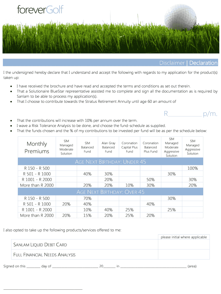 Forevermore Disclaimer Declaration I the undersigned hereby declare that I understand and accept the following in regard to my application for the product(s) taken up: I have received the brochure