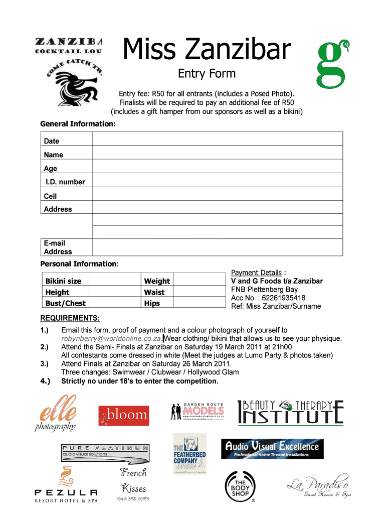 Miss Zanzibar is not the form you're looking for?Search for another form here.