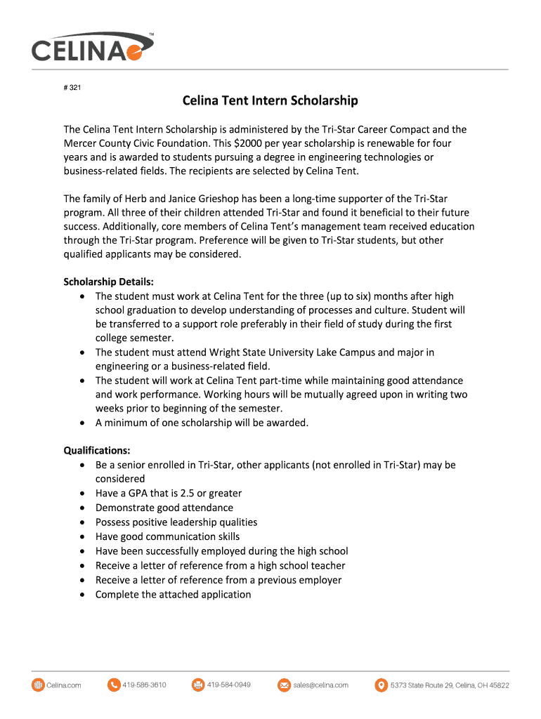 # 321Celina Tent Intern Scholarship
