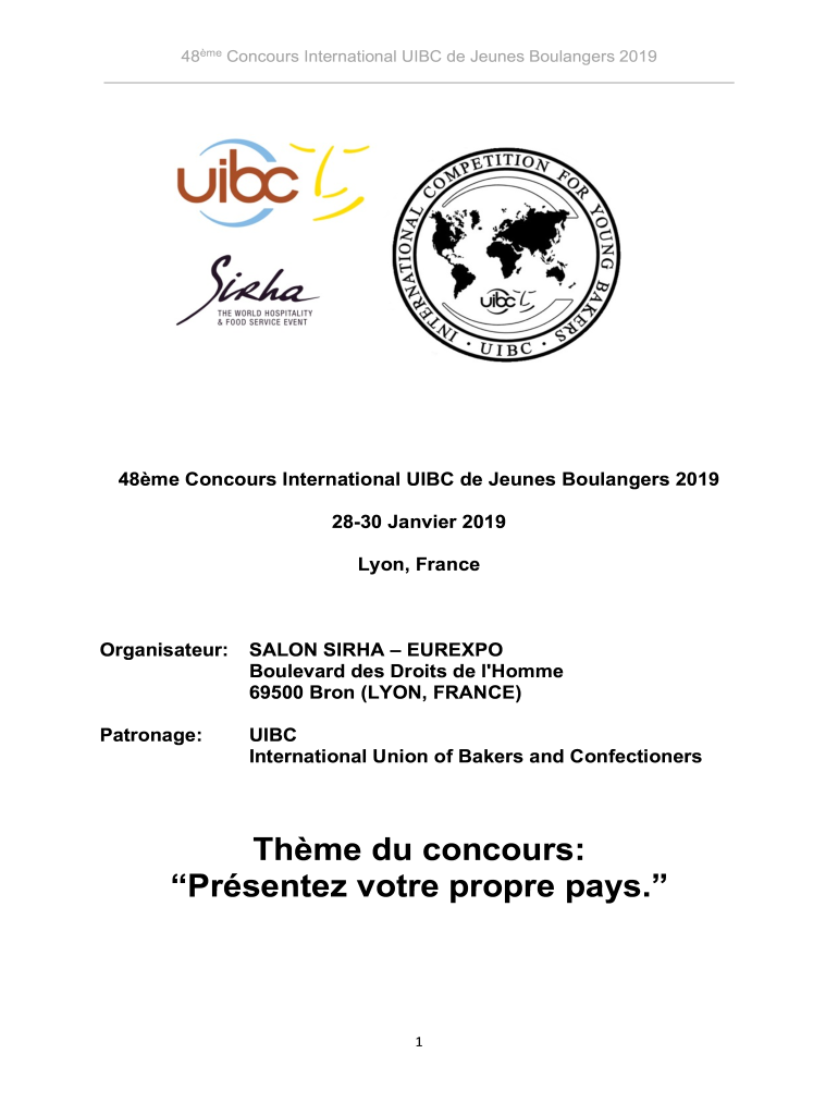 48me Concourse International IBC de Jeunes Boulanger 2019 48me Concourse International IBC de Jeunes Boulanger 2019 2830 Janvier 2019 Lyon, FranceOrganisateur:SALON SIRPA EUROPE Boulevard DES Droids