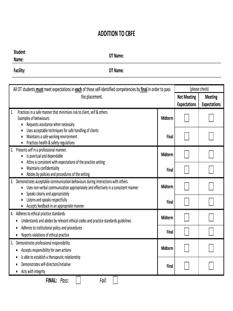 THE UNIVERSITY OF BRITISH COLUMBIADepartment of Occupational Science & Occupational TherapyFIELDWORK SITE MANUAL THE UNIVERSITY OF BRITISH COLUMBIADepartment of Occupational Science & Occupational