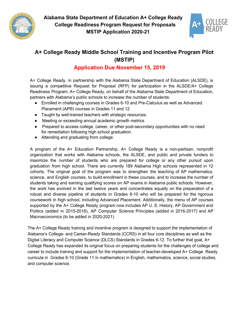 Get the free Alabama State Department of Education A+ College Ready