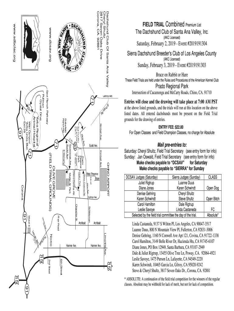 Dachshund Club Of Santa Ana Valley Cheryl Schultz 3817 Seven Oaks Drive Corona, CA. 92881Sierra Dachshund Breeder's Club of Los Angeles County (AKC Licensed)Sunday, February 3, 2019, Event #2019191303