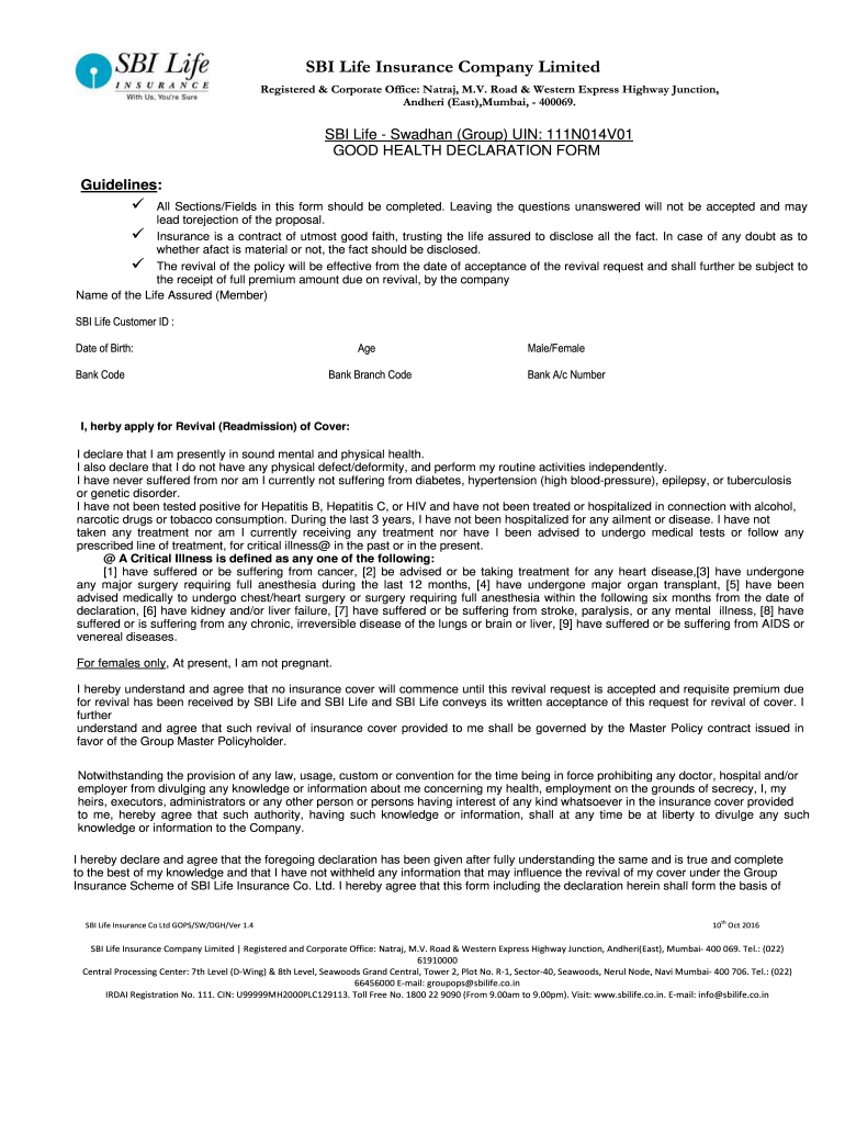 How to fill out good health declaration form