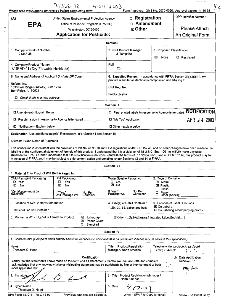 7 Please read instructions on reverse before completing form.(A)EPA opp Identifier NumberRegistration