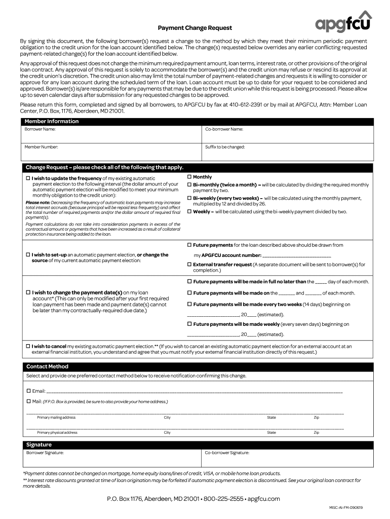 By signing this document, the following borrower(s) request a change to the method by which they meet their minimum periodic payment
