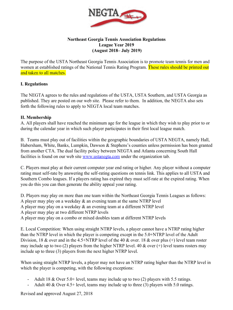 Northeast Georgia Tennis Association Regulations