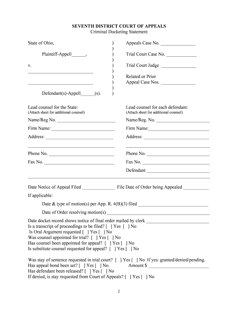 Get the free Ohio Criminal Docketing Statement