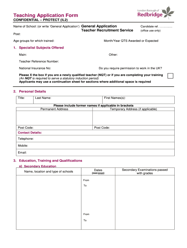 Get the free Teaching Application Form - Redbridge