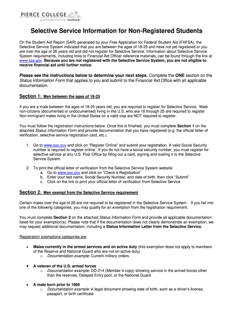 Selective Service Information for Unregistered Students