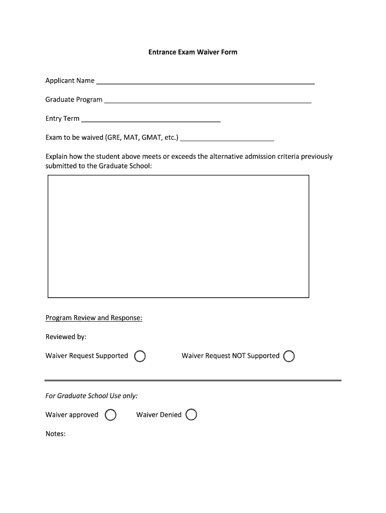 Get the free Entrance Exam Waiver Form