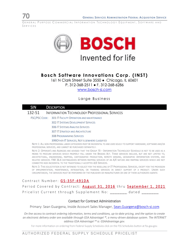 70G GENERAL S SERVICES A MINIS TRACTION F EDGE RAN A CPU POSITION S ERVICEGENERAL PURPOSE COMMERCIAL IN FORMATION TECHNOLOGY EQUIPMENT, SOFTWARE SERVICESANDBosch Software Innovations Corp. (INST)