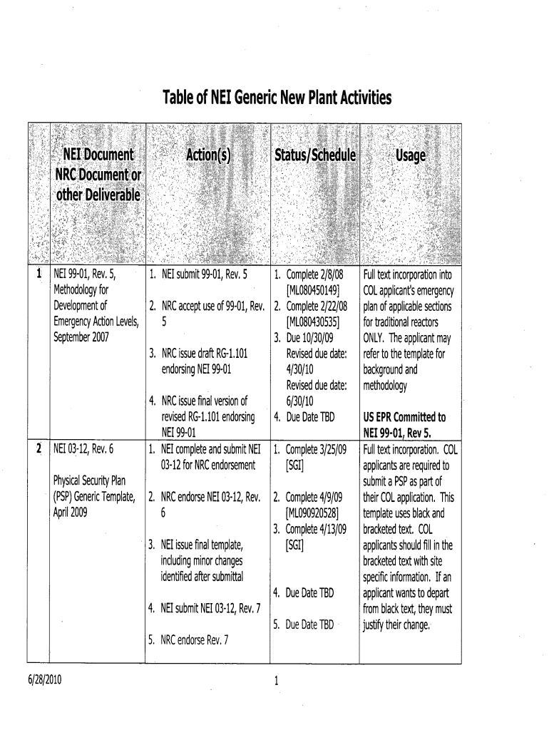 Get the free U.S. EPR Table of NEI Generic New Plant Activities 6-28-10.