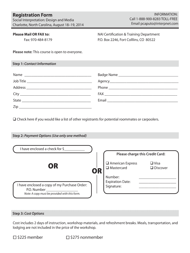 Registration Form INFORMATION: Call 1-888-900-8283 TOLL-FREE Email Caputo interpnet.com Social Interpretation: Design and Media Charlotte, North Carolina, August 18 19, 2014 Please Mail OR FAX to: