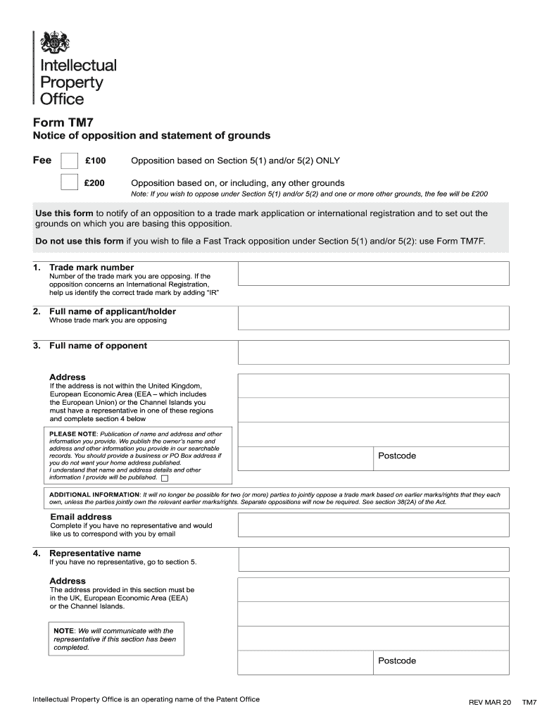 Get the free Notice of opposition and statement of grounds: Form TM7