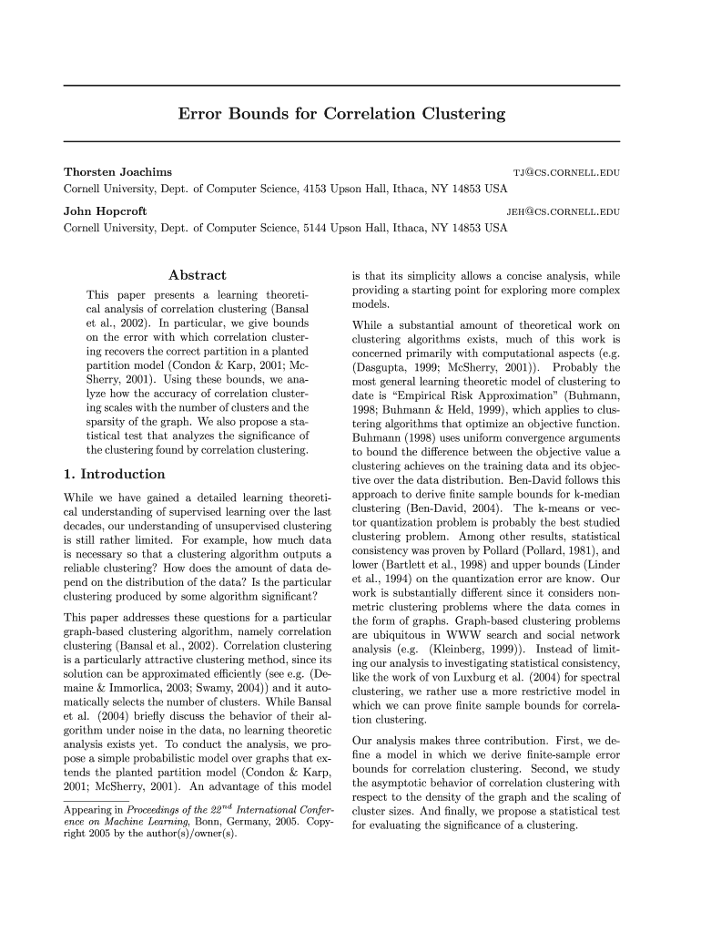 Error Bounds for Correlation ClusteringThorsten Joachim