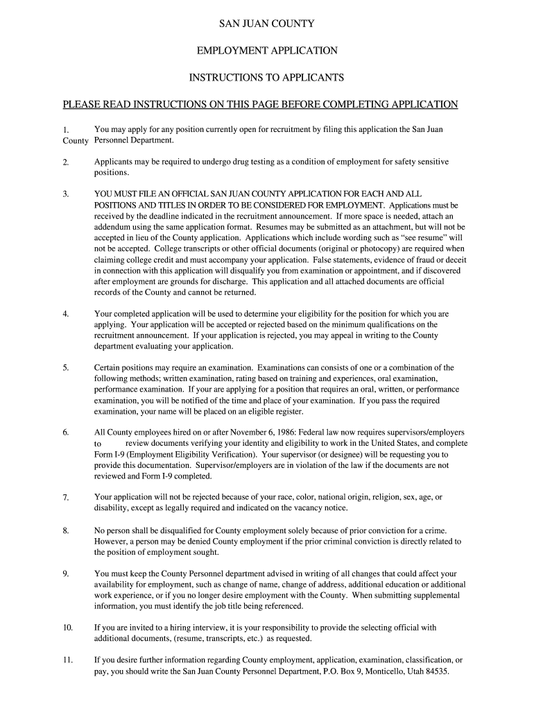 The primary purpose of the San Juan County Employment Application is to streamline the hiring process for both applicants and employers. By using this standardized form, potential employees can present their qualifications clearly and professionally.