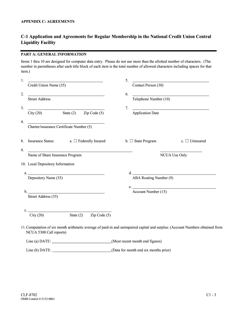 Credit unions that are members of the NCUA Central Liquidity Facility are required to file the necessary forms and reports.