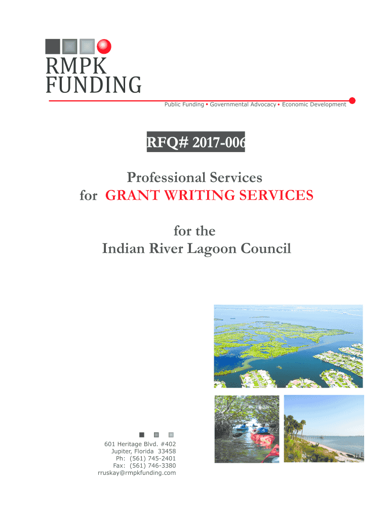 3XEOLF)XQGLQJ×RYHUQPHQWDO$GYRFDF(FRQRPLF 'HYHORSPHQW5)Q2017006 3URIHVVLRQDO6HUYLFHV IRU *$517WRITING SERVICES GROWTH Indian River Lagoon Council+HULWDJH%OYG SADHU)RULED 3K)D FUND#UPSNIXQGLQJFRP 7,7/($3*($352326/5)Q2017006