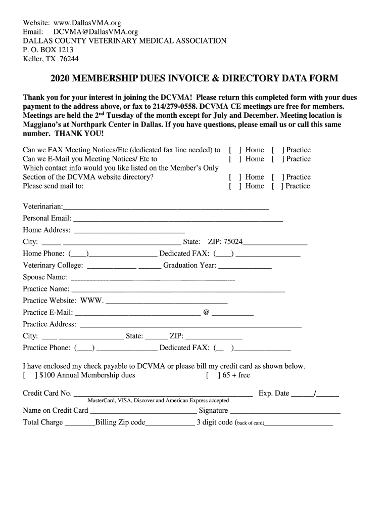 Get the free 2020 MEMBERSHIP DUES INVOICE & DIRECTORY DATA FORM