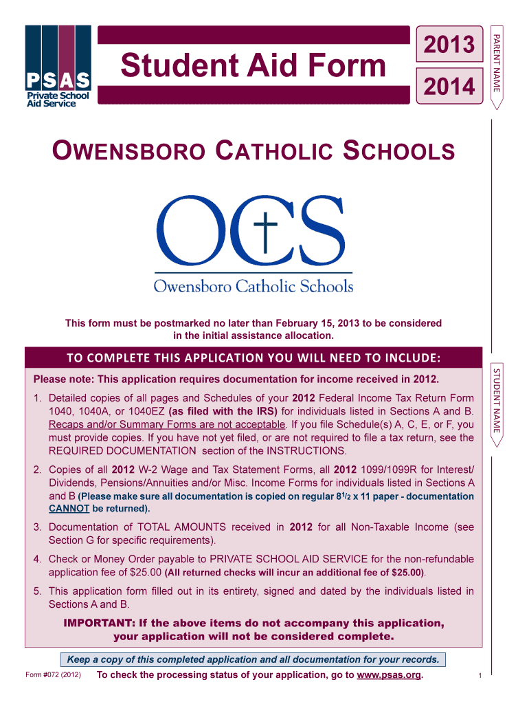 The Student Aid Form is a financial aid application used by parents or guardians to apply for tuition assistance for their children attending Owensboro Catholic Schools.