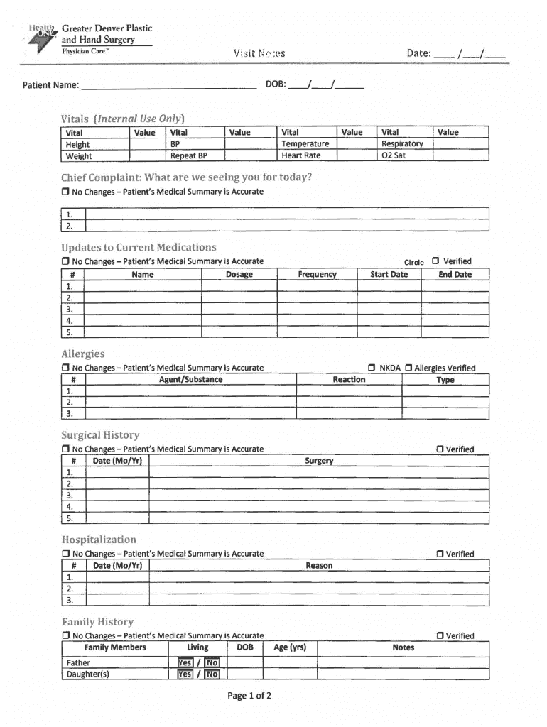 I'll 'flilGreater Denver Plastic and Hand Surgery Physician Carpenter Denver Viscoelastic NotesandHand SurqervDate: / / Patient N an m e : DOB: Vitals (Internal Use Only) ValueVital Height WeightValueVital