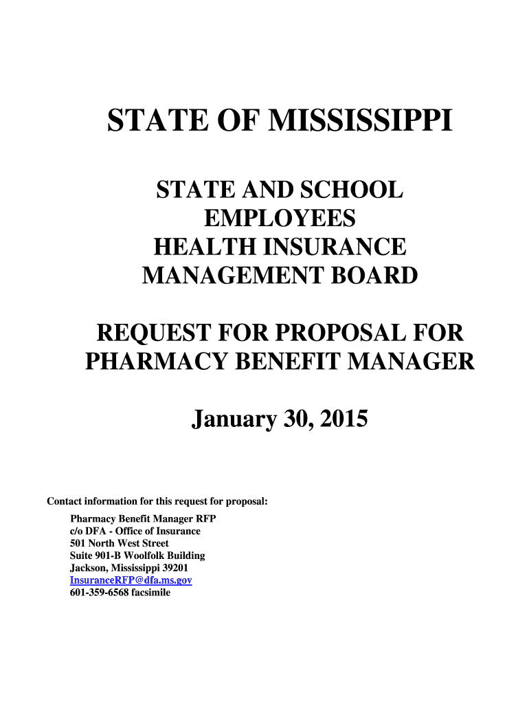 STATE OF MISSISSIPPI STATE AND SCHOOL EMPLOYEES HEALTH INSURANCE MANAGEMENT BOARD REQUEST FOR PROPOSAL FOR PHARMACY BENEFIT MANAGER January 30, 2015Contact information for this request for proposal: