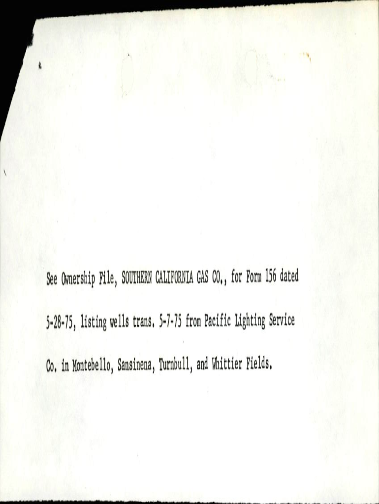 See Ownership File, SOUTHERN CALIFORNIA GAS CO, for Form 156 dated