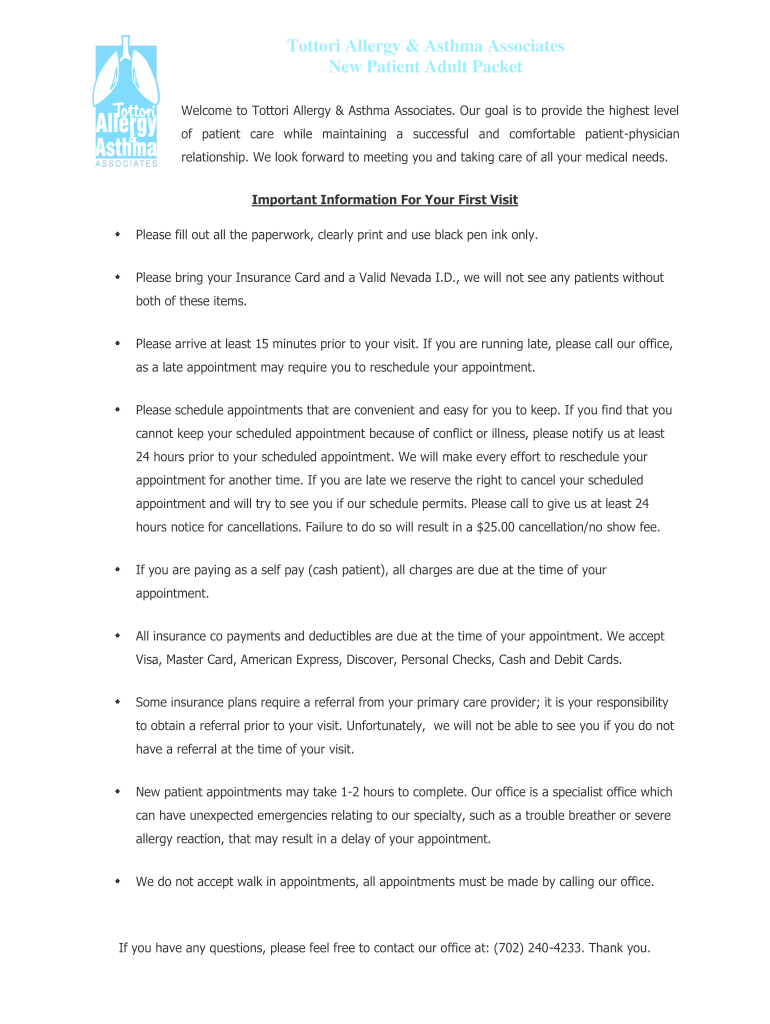 Totter Allergy & Asthma Associates New Patient Adult Packet Welcome to Totter Allergy & Asthma Associates. Our goal is to provide the highest level of patient care while maintaining a successful and